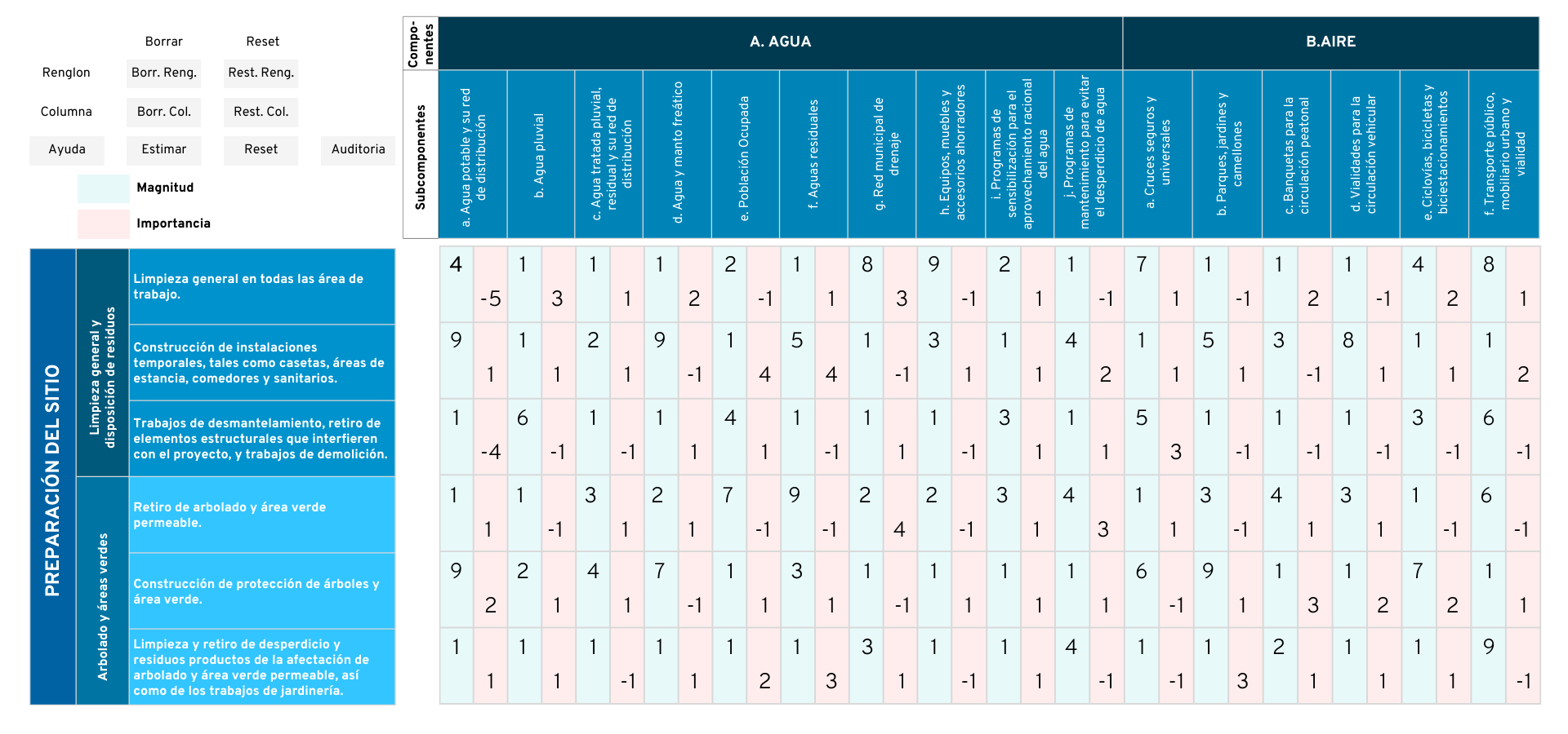 La matriz de Leopold constituye el primer método sistematizado para la evaluación de impactos ambientales. Esta matriz de causa-efecto contempla: